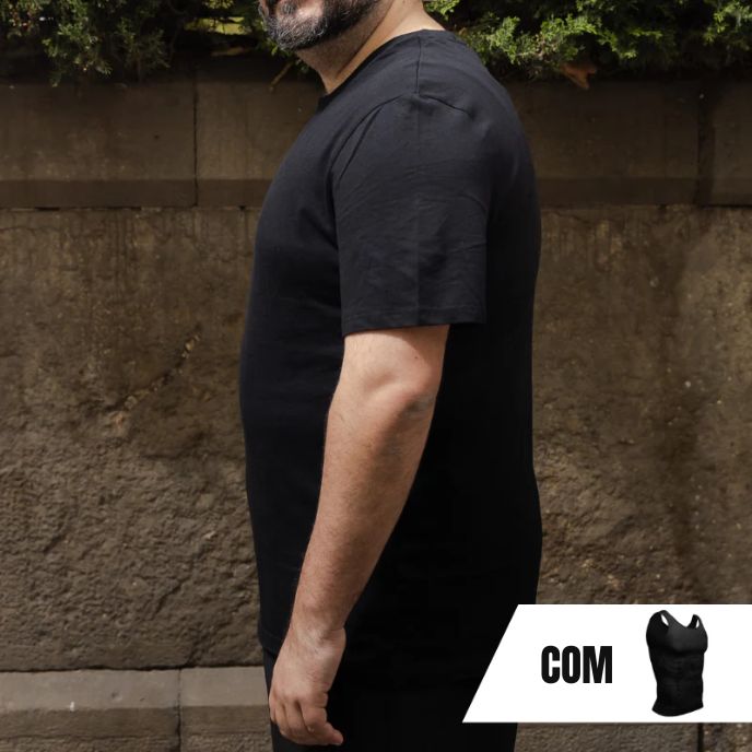 Sim! O tecido de dupla camada foi desenvolvido justamente para comprimir de forma uniforme, reduzindo o volume abdominal e valorizando o peitoral. O resultado é um visual mais firme, reto e definido na hora que você veste.